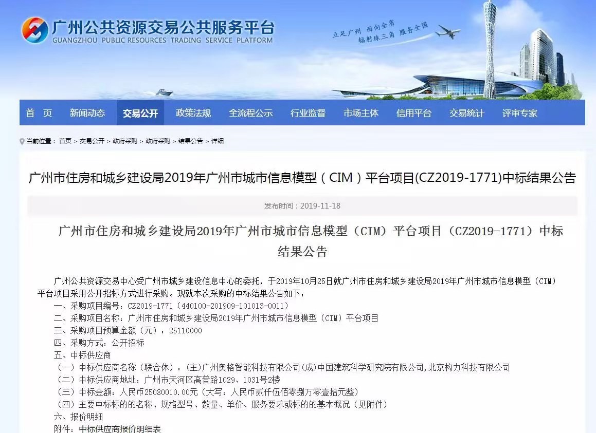 【BIM头条】中标价2511万!三巨头联手中标广州城市信息模型(CIM)管理平台