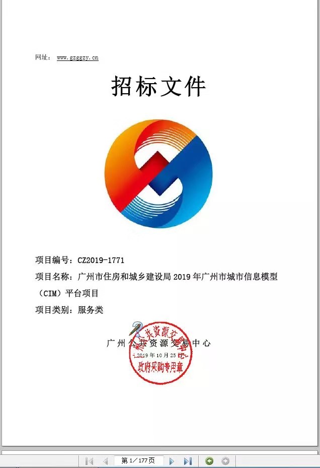 广州市住房和城乡建设局2019年广州市城市信息模型(CIM)平台项目